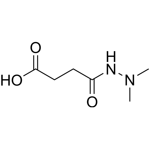 琥珀酸 2,2-二甲基肼呈无味白色晶体或粉末状。(NTP, 1992) 达米诺酰肼是一种直链脂肪酸。 达米诺酰肼——也称为 Alar、Kylar、B-NINE、DMASA、SADH 或 B 995——是一种植物生长调节剂,一种喷洒在水果上的化学物质,用于调节其生长,方便采摘,并防止苹果在成熟前从树上掉落。这确保了苹果在储存时保持鲜红紧实。Alar 于 1963 年首次获准在美国使用,主要用于苹果,直到 1989 年,在美国环境保护署提议禁用该产品(理由是其对消费者的致癌风险过高)后,生产商自愿撤回了该产品。 |
