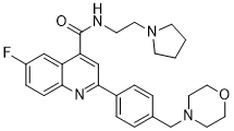 InChI=1S/C27H31FN4O2/c28-22-7-8-25-23(17-22)24(27(33)29-9-12-31-10-1-2-11-31)18-26(30-25)21-5-3-20(4-6-21)19-32-13-15-34-16-14-32/h3-8,17-18H,1-2,9-16,19H2,(H,29,33)
