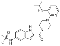 Delavirdine is an amide formed by the condensation of the 4-amino group of 5-[(methanesulfonyl)amino]-1H-indole-2-carboxylic acid and 1-[3-(isopropylamino)pyridin-2-yl]piperazine. Delavirdine is a non-nucleoside reverse transcriptase inhibitor with specific activity against HIV-1. Viral resistance develops rapidly when Delavirdine is used alone; therefore, it is often used in combination with other antiretroviral drugs for the treatment of HIV infection (in the form of mesylate). It is both an HIV-1 reverse transcriptase inhibitor and an antiviral drug. It is an N-acylpiperazine, sulfonamide, aminopyridine, and indolecarboxamide compound. It is a potent non-nucleoside reverse transcriptase inhibitor with specific activity against HIV-1. Delavirdine is a non-nucleoside analog reverse transcriptase inhibitor of human immunodeficiency virus type 1. The mechanism of action of Delavirdine is as a non-nucleoside reverse transcriptase inhibitor.