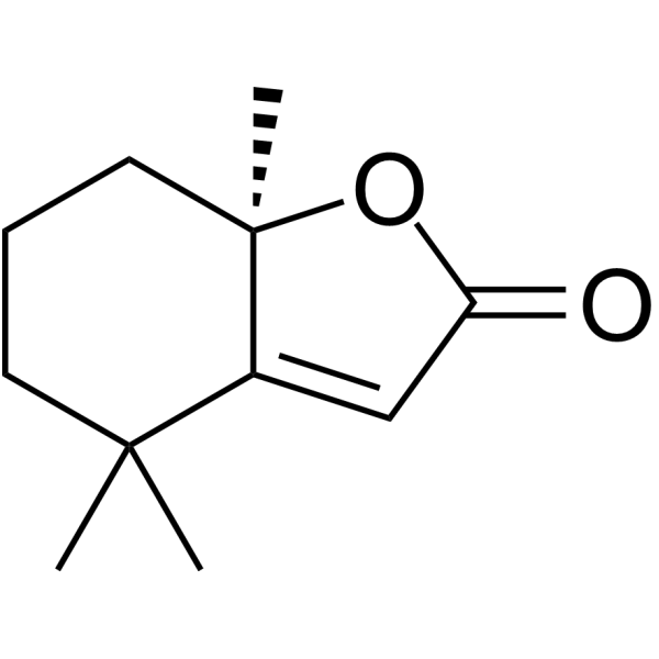 另见:金盏花(Calendula Officinalis Flower)(部分)。 二氢猕猴桃内酯(DA)是一种天然产物,是萝莉内酯(loliolide)的结构类似物,也是类胡萝卜素的降解产物,存在于红茶和烟草香气中。据报道,它是一种植物生长抑制剂和基因表达调节剂。[1] 本研究首次报道了合成的DA对阿尔茨海默病(AD)病理的神经保护潜力,证实了其多靶点特性,包括乙酰胆碱酯酶(AChE)抑制、抗氧化活性、抗淀粉样蛋白聚集和细胞保护作用。[1] 该化合物由β-紫罗兰酮经两步氧化法合成,首先用间氯过氧苯甲酸进行氧化,然后用铬酐进行氧化。 [1] 作者提出DA是一种有前景的多靶点定向配体(MTDL)候选药物,可用于进一步开发抗阿尔茨海默病疗法。[1] |