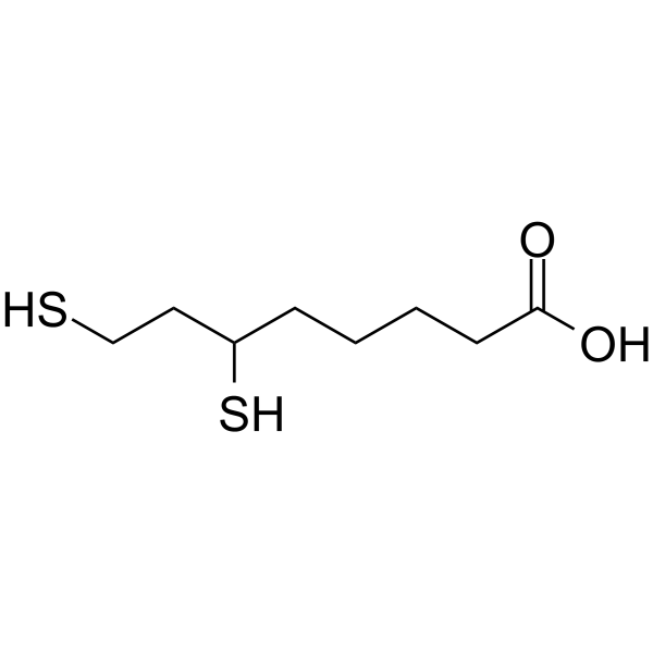 二氢硫辛酸是一种硫代脂肪酸,是硫辛酸的还原形式。它是一种强效抗氧化剂,已被证实能直接清除超氧阴离子、氢过氧自由基和羟基自由基;同时还具有神经保护和抗肿瘤作用。它既是神经保护剂,又是抗氧化剂,也是人体代谢产物。其功能与辛酸相关,是二氢硫辛酸酯的共轭酸。已有关于二氢硫辛酸在智人体内存在的报道,并有相关数据。