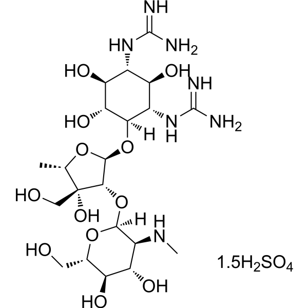 硫酸二氢链霉素是一种半合成氨基糖苷类抗生素,具有杀菌作用。硫酸二氢链霉素通过与30S核糖体亚基结合来抑制蛋白质合成。这种抗生素对大多数革兰氏阳性菌和革兰氏阴性菌均有效,用于治疗结核病和兔热病。
