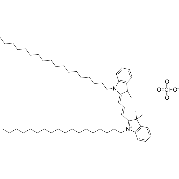 DiI stain; DiIC18(3); 41085-99-8; 1,1'-Di-n-octadecyl-3,3,3',3'-tetramethylindocarbocyanine perchlorate; (2Z)-2-[(E)-3-(3,3-Dimethyl-1-octadecylindol-1-ium-2-yl)prop-2-enylidene]-3,3-dimethyl-1-octadecylindole;perchlorate; 2-[3-(3,3-dimethyl-1-octadecylindol-1-ium-2-yl)prop-2-enylidene]-3,3-dimethyl-1-octadecylindole;perchlorate; DiI perchlorate; DII; DiIC18(3); MFCD00142354;DiI