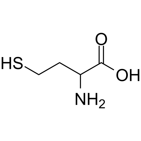 DL-Homocysteine has been reported in Arabidopsis thaliana and Saccharomyces cerevisiae with data available. Homocysteine is a uremic toxin. Uremic toxins can be subdivided into three major groups based upon their chemical and physical characteristics: 1) small, water-soluble, non-protein-bound compounds, such as urea; 2) small, lipid-soluble and/or protein-bound compounds, such as the phenols and 3) larger so-called middle-molecules, such as beta2-microglobulin. Chronic exposure of uremic toxins can lead to a number of conditions including renal damage, chronic kidney disease and cardiovascular disease. Homocysteine is a sulfur-containing amino acid that arises during methionine metabolism. Although its concentration in plasma is only about 10 micromolar (uM), even moderate hyperhomocysteinemia is associated with increased incidence of cardiovascular disease and Alzheimer's disease. Elevations in plasma homocysteine are commonly found as a result of vitamin deficiencies, polymorphisms of enzymes of methionine metabolism, and renal disease. Pyridoxal, folic acid, riboflavin, and Vitamin B(12) are all required for methionine metabolism, and deficiency of each of these vitamins result in elevated plasma homocysteine. A polymorphism of methylenetetrahydrofolate reductase (C677T), which is quite common in most populations with a homozygosity rate of 10-15 %, is associated with moderate hyperhomocysteinemia, especially in the context of marginal folate intake. Plasma homocysteine is inversely related to plasma creatinine in patients with renal disease. This is due to an impairment in homocysteine removal in renal disease. Homocysteine is an independent cardiovascular disease (CVD) risk factor modifiable by nutrition and possibly exercise. Homocysteine was first identified as an important biological compound in 1932 and linked with human disease in 1962 when elevated urinary homocysteine levels were found in children with mental retardation. This condition, called homocysteinuria, was later associated with premature occlusive CVD, even in children. These observations led to research investigating the relationship of elevated homocysteine levels and CVD in a wide variety of populations including middle age and elderly men and women with and without traditional risk factors for CVD. (A3281, A3282). A thiol-containing amino acid formed by a demethylation of METHIONINE. - The dual effect of DL-Homocysteine on brain kynurenic acid synthesis is likely mediated by concentration-dependent regulation of kynurenine aminotransferase (KAT) activity—low concentrations activate KAT, while high concentrations inhibit it—thus altering the level of the glutamate receptor antagonist kynurenic acid [1] - Elevated plasma DL-Homocysteine (as part of total homocysteine) may exacerbate white matter microstructural damage in Alzheimer’s disease patients by enhancing oxidative stress and inflammatory responses, which is associated with disease progression [2] |