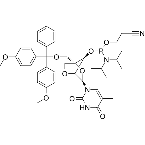 CC(C)N(C(C)C)P(OCCC#N)O[C@@H]([C@@H](OC1)[C@H](N2C(NC(C(C)=C2)=O)=O)O3)[C@@]31COC(C4=CC=C(OC)C=C4)(C5=CC=CC=C5)C6=CC=C(OC)C=C6