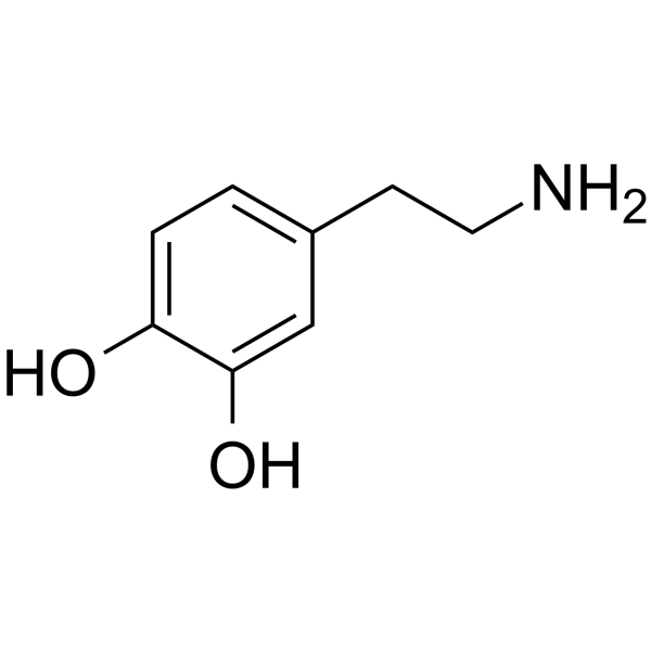 Inotropic Agents During cardiopulmonary resuscitation (CPR), dopamine is also used in advanced cardiovascular life support (ACLS) to increase cardiac output and blood pressure. For symptomatic bradycardia unresponsive to atropine, dopamine may be considered as a temporary measure, such as while waiting for a pacemaker to become available or when pacing is ineffective. During resuscitation, dopamine therapy is commonly used to control hypotension, especially in cases of symptomatic bradycardia or after the restoration of spontaneous circulation. Dopamine in combination with other drugs (such as dobutamine) may also be an effective treatment option for post-resuscitation hypotension. If hypotension persists after filling pressure (i.e., intravascular volume) optimization, drugs with positive inotropic and vasopressor effects (such as epinephrine, noradrenaline) may be used. Some evidence from animal studies suggests that epinephrine may be more effective than dopamine in improving hemodynamics during CPR. Furthermore, for patients with severe bradycardia and hypotension, epinephrine is generally the first choice because pulseless electrical activity or even cardiac arrest may be imminent. /US Product Label Content/ Dopamine's net hemodynamic effects make it particularly effective in treating cardiogenic shock (including shock associated with acute myocardial infarction) or oliguric shock unresponsive to other vasopressors. Some experts note that dopamine can be used to treat drug-induced hypovolemic shock, and it is often the recommended initial treatment when patients are unresponsive to fluid resuscitation and require support from positive inotropic and/or vasopressor drugs. In patients with left ventricular failure following acute myocardial infarction, if arterial blood pressure drops sharply during afterload reduction, dopamine can be used as an adjunct (to further increase cardiac output and maintain blood pressure) in combination with vasodilators (such as sodium nitroprusside); for smaller drops, dobutamine is preferred, but it should not be used alone in patients with severe hypotension. In patients with hypotensive cardiogenic shock following acute myocardial infarction, dopamine can be used as an alternative to norepinephrine once systemic arterial pressure rises to at least 80 mmHg. Once arterial blood pressure stabilizes at at least 90 mmHg, dobutamine and dopamine can be used in combination in these patients to reduce the required dose of dopamine. Dopamine has also been used to support cardiac output and maintain arterial blood pressure during intra-aortic balloon counterpulsation (IACP) therapy (e.g., in patients with hypotensive cardiogenic shock following acute myocardial infarction). Studies have shown that dopamine use in low cardiac output syndrome following open-heart surgery can improve long-term survival. However, because dobutamine reduces peripheral resistance over a wide dose range, its action is independent of the release of endogenous catecholamines, and it is cardiac selective, immediate use after cardiopulmonary bypass surgery may be more ideal. /US Product Label Content/ Dopamine is used to increase cardiac output, blood pressure, and urine output as an adjunct therapy for the treatment of shock that persists despite adequate fluid resuscitation and for conditions of decreased systemic vascular resistance. /Included in US Product Label/ For more complete data on the therapeutic uses of dopamine (12 types), please visit the HSDB record page. Drug Warnings Dopamine should be used with caution in patients with ischemic heart disease. This drug is contraindicated in patients with pheochromocytoma, uncorrected tachyarrhythmias, or ventricular fibrillation. Commercially available dopamine hydrochloride preparations may contain sulfites, and allergic reactions may occur in certain susceptible individuals, including anaphylactic shock and life-threatening or mild asthma attacks. The overall prevalence of sulfite allergy in the general population is unknown but is likely low; this allergy appears to be more common in asthmatic patients than in non-asthmatic patients. Extravasation should be avoided. Dopamine should be administered via a long intravenous catheter into a larger vein, preferably the cubital fossa vein rather than the hand or ankle. One manufacturer notes that administration via the umbilical artery catheter is not recommended. If a larger vein is not available and the patient's condition necessitates administration via a hand or ankle vein, the injection site should be changed to a larger vein as soon as possible. The injection site should be closely monitored. Patients with a history of occlusive vascular disease (e.g., atherosclerosis, arterial embolism, Raynaud's disease, frostbite, diabetic endarteritis, or thromboangiitis obliterans) should be closely monitored for decreased limb circulation, manifested as changes in skin color or temperature, or limb pain, during dopamine treatment. If these occur, they can be corrected by reducing the infusion rate or discontinuing dopamine. However, these changes can sometimes persist and worsen after discontinuation of dopamine. The potential benefits of continuing dopamine use should be weighed against the potential risk of necrosis. For more complete data on dopamine (13 in total), please visit the HSDB record page. Pharmacodynamics Dopamine is a natural catecholamine formed by the decarboxylation of 3,4-dihydroxyphenylalanine (DOPA). It is a precursor of norepinephrine in noradrenergic nerves and a neurotransmitter in certain areas of the central nervous system (especially the substantia nigra striatum) and a few peripheral sympathetic nerves. Dopamine has positive chronotropic and positive inotropic effects on the myocardium, thereby increasing heart rate and myocardial contractility. This is achieved directly through its agonist effect on β-adrenergic receptors and indirectly through the release of norepi