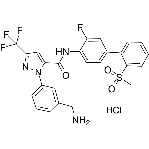 CS(=O)(C1=CC=CC=C1C2=CC(F)=C(NC(C3=CC(C(F)(F)F)=NN3C4=CC=CC(CN)=C4)=O)C=C2)=O.Cl