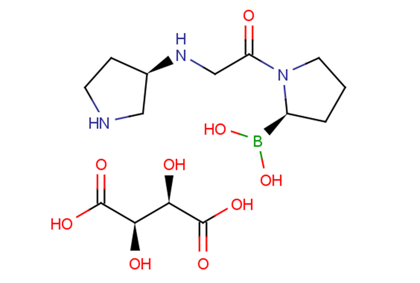 酒石酸度格列汀是度格列汀的酒石酸盐形式,度格列汀是一种强效、水溶性、选择性强且口服生物利用度高的硼酸类二肽基肽酶4 (DPP-4) 抑制剂,具有降血糖活性。度格列汀与DPP-4不可逆结合。