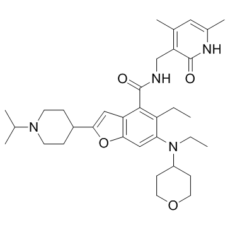 O1C2=CC(N(CC)C3CCOCC3)=C(CC)C(C(NCC3=C(C)C=C(C)NC3=O)=O)=C2C=C1C1CCN(C(C)C)CC1
