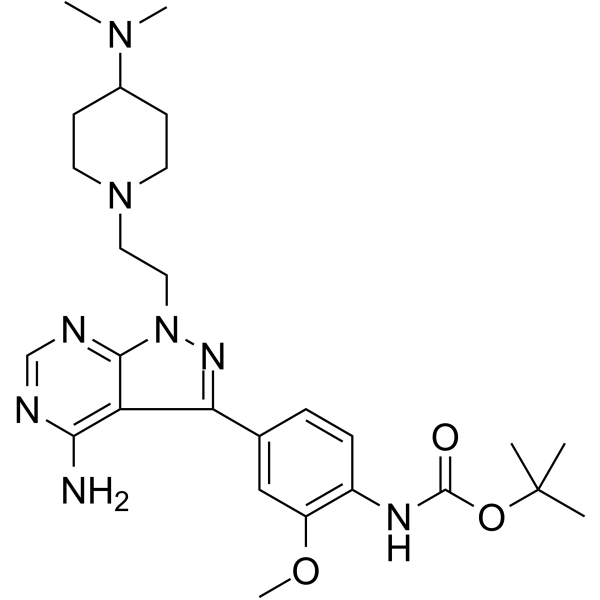 C1=C(C=CC(NC(=O)OC(C)(C)C)=C1OC)C1=NN(CCN2CCC(CC2)N(C)C)C2N=CN=C(N)C1=2