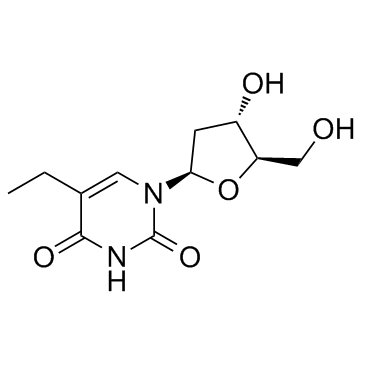 艾多西定是一种脱氧胸苷类似物,具有抗单纯疱疹病毒活性。它是1型和2型单纯疱疹病毒的强效选择性抑制剂。所得产品为抗病毒软膏。艾多西定抗单纯疱疹病毒的活性于1967年首次被发现。后来,在疱疹病毒引起的角膜炎临床前模型中,证实其体内有效。该药由麦克尼尔制药公司研发,并于1992年12月31日获得加拿大卫生部批准。该药于1998年停产。 艾多西定是一种脱氧胸苷类似物,具有抗单纯疱疹病毒活性。艾多西定经病毒胸苷激酶激活生成5'-单磷酸,后者进一步被细胞酶磷酸化生成5'-三磷酸,后者是病毒编码DNA聚合酶的竞争性抑制剂。 药物适应症 艾多西定在欧洲曾以局部抗病毒药物的形式用于治疗人类疱疹性角膜炎。人类疱疹性角膜炎是由单纯疱疹病毒感染引起的眼角膜炎症。这种感染会导致严重的疾病,复发性感染会显著增加发病率,甚至可能导致角膜盲。3%艾多西定乳膏也曾用于治疗皮肤单纯疱疹病毒感染。这种病毒可引起普遍感染,且具有高度传染性。疱疹病毒分为两种类型:1 型主要通过口口接触传播,2 型主要通过性传播。 作用机制 依度西定是 1 型和 2 型单纯疱疹病毒复制的强效抑制剂。该药物的激活需要病毒胸苷激酶的作用,使其磷酸化形成 5'-单磷酸衍生物。然后,该衍生物需要进一步被细胞酶磷酸化,直至形成 5'-三磷酸衍生物,后者是病毒编码的 DNA 聚合酶的竞争性抑制剂。依度西定的优势在于其高度选择性,这一特性体现在其优先磷酸化疱疹病毒感染细胞以及优先掺入病毒 DNA 上。 |