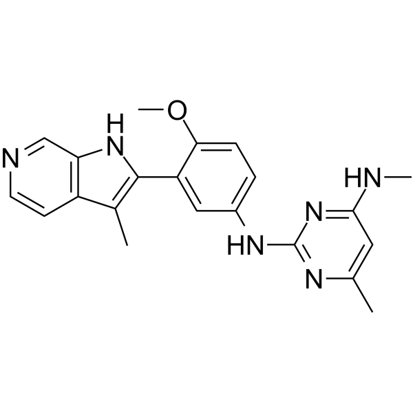 InChI=1S/C21H22N6O/c1-12-9-19(22-3)27-21(24-12)25-14-5-6-18(28-4)16(10-14)20-13(2)15-7-8-23-11-17(15)26-20/h5-11,26H,1-4H3,(H2,22,24,25,27)