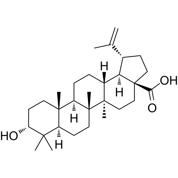 它是桦木醇的羽扇豆烷型三萜衍生物,桦木醇最初是从桦树(BETULA)中分离得到的。它具有抗炎、抗HIV和抗肿瘤活性。 另见:桦木酸(注释已移至)。 1.表桦木酸是一种羽扇豆烷型三萜化合物,分离自卫矛属植物(特别是冬青叶卫矛和粗壮卫矛),这些植物传统上用于民间医学的抗炎和镇痛用途[1]。 2.表桦木酸的抗炎机制主要与其抑制iNOS和COX-2活性的能力有关,从而减少NO和PGE2(炎症反应的两种关键介质)的过度产生。该机制与其他羽扇豆烷三萜类化合物的抗炎作用一致,但与结构相似的化合物(例如桦木酸)相比,在同一项研究中显示出更高的效力[1] 3. 该研究证实表桦木酸具有潜在的抗炎活性和低细胞毒性,为进一步开发表桦木酸作为抗炎先导化合物或其在传统医学中的应用验证提供了实验基础[1] |