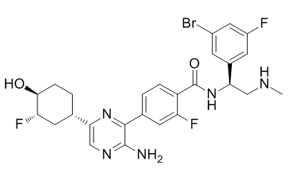 4-[3-amino-6-[(1S,3S,4S)-3-fluoro-4-hydroxycyclohexyl]pyrazin-2-yl]-N-[(1S)-1-(3-bromo-5-fluorophenyl)-2-(methylamino)ethyl]-2-fluorobenzamide