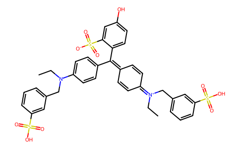 S(C1C=C(C=CC=1C(=C1C=CC(C=C1)=[N+](CC)CC1C=CC=C(C=1)S(=O)(=O)O)C1C=CC(=CC=1)N(CC)CC1C=CC=C(C=1)S(=O)(=O)O)O)(=O)(=O)[O-] |t:8,15|