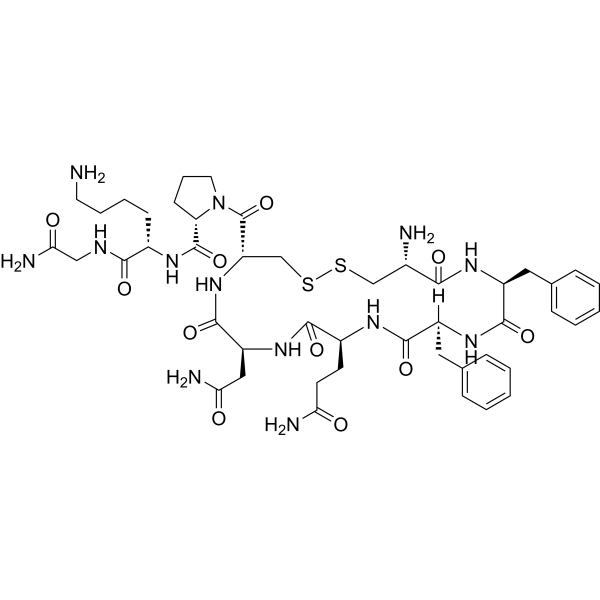 InChI=1S/C46H65N13O11S2/c47-18-8-7-14-29(40(64)52-23-38(51)62)54-45(69)35-15-9-19-59(35)46(70)34-25-72-71-24-28(48)39(63)55-31(20-26-10-3-1-4-11-26)43(67)56-32(21-27-12-5-2-6-13-27)42(66)53-30(16-17-36(49)60)41(65)57-33(22-37(50)61)44(68)58-34/h1-6,10-13,28-35H,7-9,14-25,47-48H2,(H2,49,60)(H2,50,61)(H2,51,62)(H,52,64)(H,53,66)(H,54,69)(H,55,63)(H,56,67)(H,57,65)(H,58,68)/t28-,29-,30-,31-,32-,33-,34-,35-/m0/s1