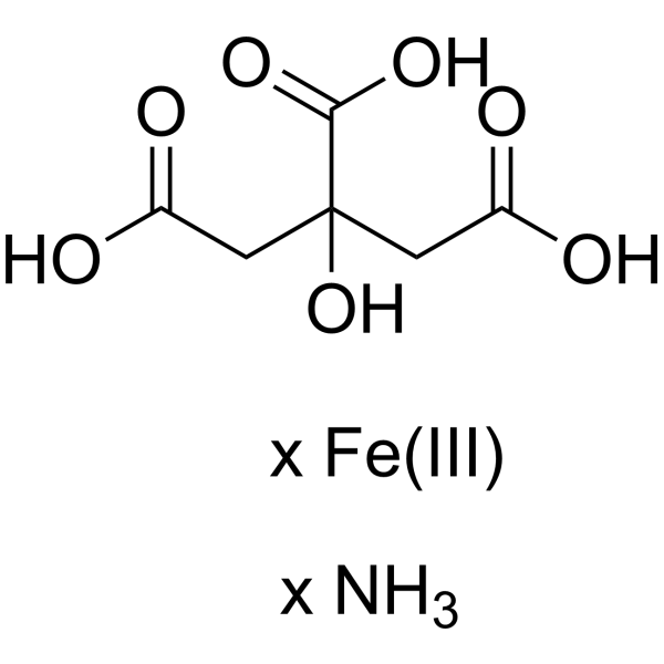在 HT1080 细胞中,5 mM 柠檬酸铁 (III) 铵(柠檬酸铁铵;1、5、10、15 mM;24 小时)会导致细胞死亡。 AML12 细胞保留了 80% 以上的活力,并对柠檬酸铁 (III) 铵表现出高水平的耐药性。潜在的转运蛋白活性允许柠檬酸铁(III)进入细胞。 [1] 小球藻 FSP-E (CV),12 mg/L 和 18 mg/L,增加了 BG-11[2] 柠檬酸铁 (III) (6、12、18 mg/L) 培养基中的生物量。