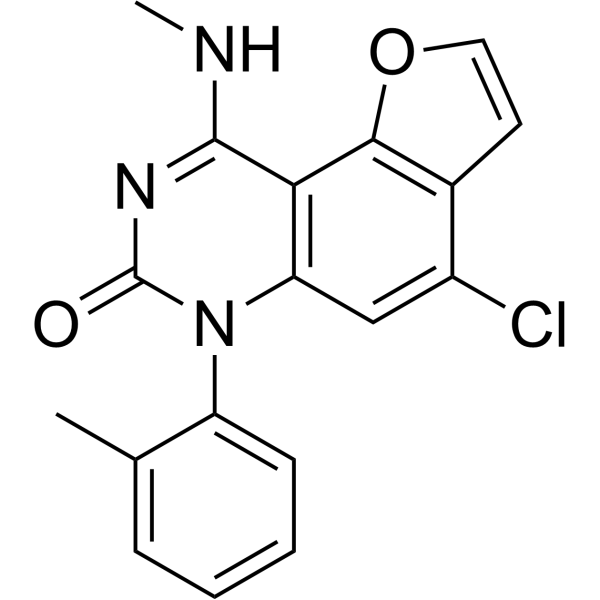 - 体内急性毒性:小鼠单次腹腔注射剂量高达 50 mg/kg 未引起死亡或显著毒性(例如嗜睡、摄食行为异常)[1] - 亚慢性毒性:小鼠连续 21 天以 20 mg/kg/天的剂量给药,血液学参数(红细胞、白细胞、血小板)或肝肾功能(ALT、AST、BUN、肌酐)均未见显著变化。主要器官(肝脏、肾脏、结肠、心脏)未观察到组织病理学病变[1] |
