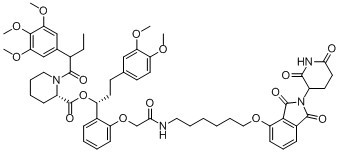 CC[C@@H](C1=CC(=C(C(=C1)OC)OC)OC)C(=O)N2CCCC[C@H]2C(=O)O[C@H](CCC3=CC(=C(C=C3)OC)OC)C4=CC=CC=C4OCC(=O)NCCCCCCOC5=CC=CC6=C5C(=O)N(C6=O)C7CCC(=O)NC7=O