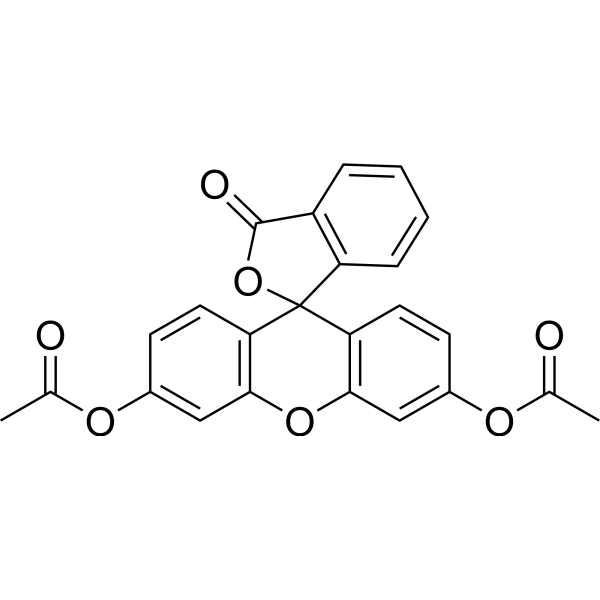 绿色荧光染料荧光素有一种乙酰化衍生物,称为二乙酸荧光素 (FDA) [1]。人 Pi 样谷胱甘肽 S-转移酶 (hGSTP1) 使用荧光素二乙酸酯 (FDA)(一种荧光探针)对各种胞质 GST 进行活体标记。具有选择性激活的荧光探针。外源过表达 hGSTP1 的 MCF7 细胞显示荧光素二乙酸酯的荧光激活,其对 GST 抑制剂敏感,但 hGSTA1 或 hGSTM1 过表达细胞则不然。对于hGSTP1-1,荧光素二乙酸酯可以用作荧光底物。为了确定hGSTP1活性是否是荧光激活的原因,在体外用荧光素二乙酸酯处理重组hGSTP1-1和GSH。当 GSH 和 hGSTP1-1 同时存在时,荧光显着激活;在两者都不存在或酶被热灭活时,仅存在轻微的激活。这表明 hGSTP1-1 活性对于荧光素二乙酸酯的荧光激活是必需的。根据荧光增加率与 hGSTP1-1 浓度之间的线性关系,发现 1 μM 荧光素二乙酸酯的比酶活性为 79 ± 15 nmol/min/mg 蛋白质。可用于体外评估 GSTP1-1 抑制剂的一种荧光底物是荧光素二乙酸酯。使用荧光素二乙酸酯作为底物,Ethacrynic Acid (EA) 和 NBDHEX 均以浓度依赖性方式抑制 hGSTP1-1 依赖性荧光增加,IC50 值分别为 3.3±0.5 μM 和 0.61±0.04 μM [2]。