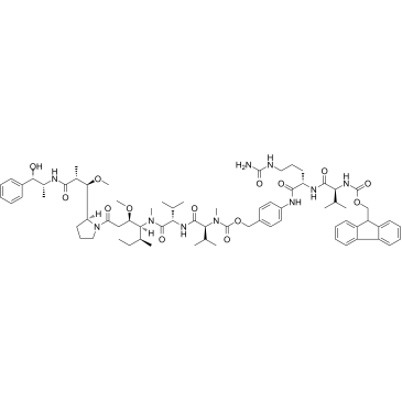 [4-[[(2S)-5-(carbamoylamino)-2-[[(2S)-2-(9H-fluoren-9-ylmethoxycarbonylamino)-3-methylbutanoyl]amino]pentanoyl]amino]phenyl]methyl N-[(2S)-1-[[(2S)-1-[[(3R,4S,5S)-1-[(2S)-2-[(1R,2R)-3-[[(1S,2R)-1-hydroxy-1-phenylpropan-2-yl]amino]-1-methoxy-2-methyl-3-oxopropyl]pyrrolidin-1-yl]-3-methoxy-5-methyl-1-oxoheptan-4-yl]-methylamino]-3-methyl-1-oxobutan-2-yl]amino]-3-methyl-1-oxobutan-2-yl]-N-methylcarbamate