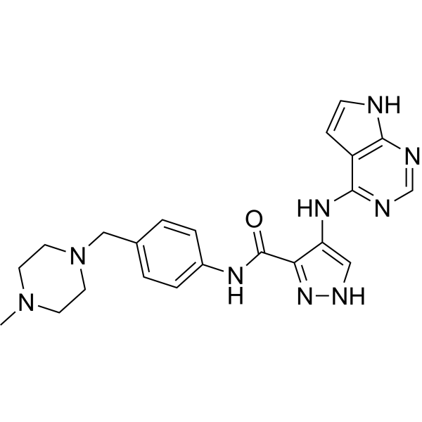O=C(C1=C(C=NN1)NC1=C2C=CNC2=NC=N1)NC1C=CC(=CC=1)CN1CCN(C)CC1