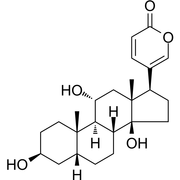 - Gamabufotalin targets the STAT3/Mcl-1 signaling pathway [2] - Gamabufotalin targets ATP1A3 (specifically the Thr794 residue) and the AQP4 pathway [3] - Gamabufotalin targets the VEGFR-2 signaling pathway (IC50 for VEGFR-2 kinase inhibition: ~1.5 μM) [4] |