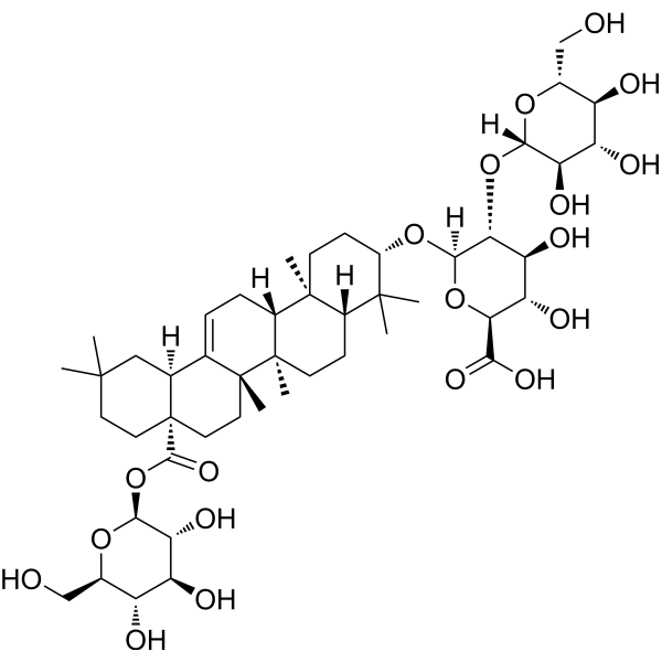 InChI=1S/C48H76O19/c1-43(2)14-16-48(42(61)67-40-35(58)31(54)29(52)24(20-50)63-40)17-15-46(6)21(22(48)18-43)8-9-26-45(5)12-11-27(44(3,4)25(45)10-13-47(26,46)7)64-41-37(33(56)32(55)36(65-41)38(59)60)66-39-34(57)30(53)28(51)23(19-49)62-39/h8,22-37,39-41,49-58H,9-20H2,1-7H3,(H,59,60)/t22-,23+,24+,25-,26+,27-,28+,29+,30-,31-,32-,33-,34+,35+,36-,37+,39-,40-,41+,45-,46+,47+,48-/m0/s1