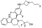 FC(C([H])([H])O[H])(C([H])([H])N1[C@]([H])(C([H])([H])[H])C([H])([H])C2C3=C([H])C([H])=C([H])C([H])=C3N([H])C=2[C@@]1([H])C1C(=C([H])C(=C([H])C=1F)N([H])C1([H])C([H])([H])N(C([H])([H])C([H])([H])C([H])([H])F)C1([H])[H])F)F