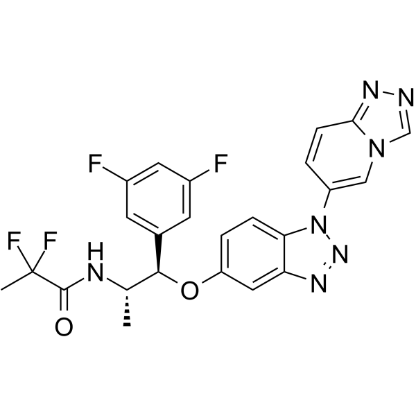 C[C@@H]([C@@H](C1=CC(=CC(=C1)F)F)OC2=CC3=C(C=C2)N(N=N3)C4=CN5C=NN=C5C=C4)NC(=O)C(C)(F)F