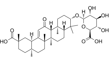 RBL-2H3 细胞释放 β-己糖胺酶可被甘草次酸 3-O-β-D-葡萄糖醛酸抑制,IC50 值为 0.28 mM[2]。甘草次酸 3-O-β-D-葡萄糖醛酸 (GAMG) 的 IC50 值为 120 μM,以剂量依赖性方式显着降低 LPS 诱导的 RAW264.7 细胞中的亚硝酸盐浓度 [2]。
