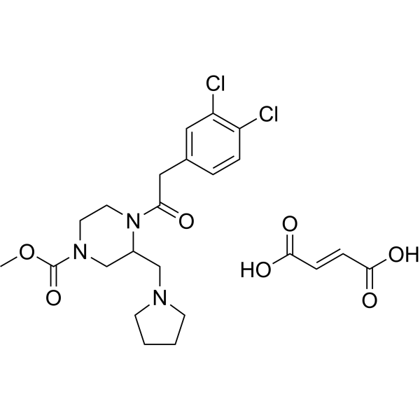 COC(=O)N1CCN(C(C1)CN2CCCC2)C(=O)CC3=CC(=C(C=C3)Cl)Cl.C(=C/C(=O)O)\C(=O)O