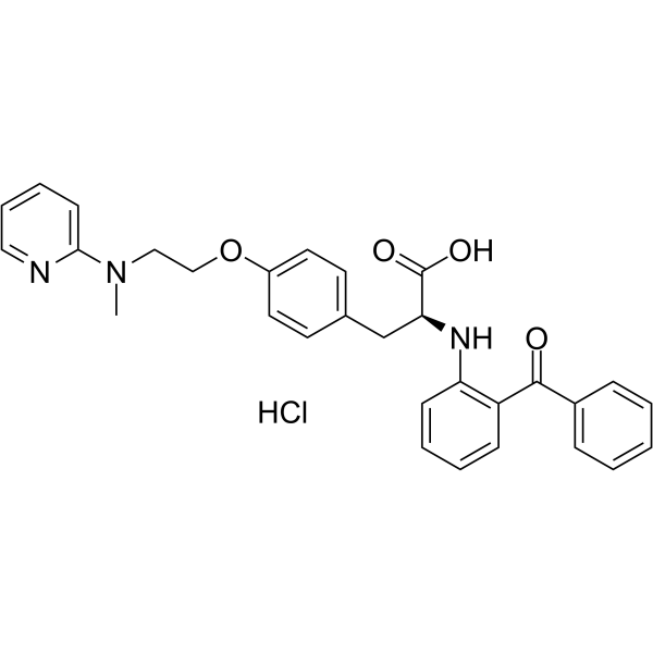 (2S)-2-(2-benzoylanilino)-3-[4-[2-[methyl(pyridin-2-yl)amino]ethoxy]phenyl]propanoic acid;hydrochloride