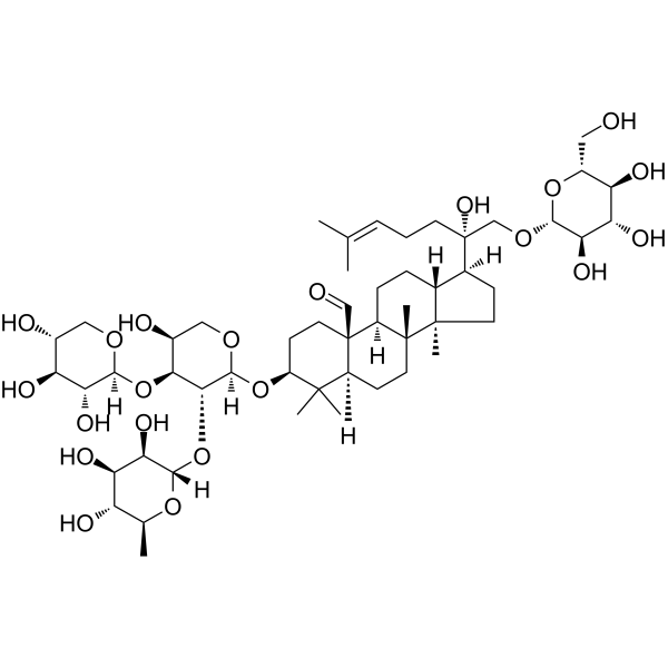 例如,若需制备1 mL的工作液,可将100 μL 62.5 mg/mL澄清的DMSO储备液加入到400 μL PEG300中,混匀;再向上述溶液中加入50 μL Tween-80,混匀;然后加入450 μL生理盐水定容至1 mL。 *生理盐水的制备:将 0.9 g 氯化钠溶解在 100 mL ddH₂O中,得到澄清溶液。 配方 2 中的溶解度: ≥ 6.25 mg/mL (5.97 mM) (饱和度未知) in 10% DMSO + 90% (20% SBE-β-CD in Saline) (这些助溶剂从左到右依次添加,逐一添加), 澄清溶液。 例如,若需制备1 mL的工作液,可将 100 μL 62.5mg/mL澄清的DMSO储备液加入到900μL 20%SBE-β-CD生理盐水中,混匀。 *20% SBE-β-CD 生理盐水溶液的制备(4°C,1 周):将 2 g SBE-β-CD 溶解于 10 mL 生理盐水中,得到澄清溶液。 View More