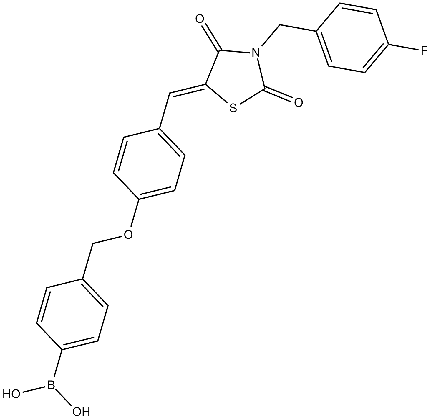 B(C1=CC=C(C=C1)COC2=CC=C(C=C2)/C=C\3/C(=O)N(C(=O)S3)CC4=CC=C(C=C4)F)(O)O
