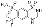 氢氟噻嗪是一种苯并噻二嗪类药物,由3,4-二氢-1,2,4-苯并噻二嗪双环体系构成,硫原子上被二氧取代,并在6位和7位分别连接有三氟甲基和氨基磺酰基。它是一种利尿剂,其作用和用途与氢氯噻嗪相似。它既是利尿剂又是降压药。它属于苯并噻二嗪类和噻嗪类药物。
