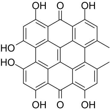 金丝桃素正在被研究用于治疗皮肤T细胞淋巴瘤。 据报道,金丝桃素存在于金丝桃属植物(如金丝桃、毛金丝桃)和其他一些有相关数据的生物体中。 金丝桃素是一种蒽醌衍生物,天然存在于贯叶连翘(圣约翰草)的黄色花朵中,具有抗抑郁、潜在的抗病毒、抗肿瘤和免疫刺激活性。金丝桃素似乎能抑制神经元对血清素、去甲肾上腺素、多巴胺、γ-氨基丁酸(GABA)和L-谷氨酸的摄取,这可能有助于其发挥抗抑郁作用。金丝桃素可能通过抑制病毒颗粒在感染细胞内的组装和脱落,从而阻止荚膜病毒的复制。此外,该物质还能通过触发细胞凋亡信号通路产生活性氧,从而发挥强效的光毒性作用。 |