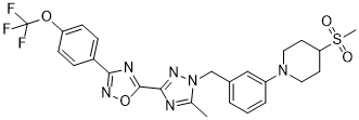 S(C([H])([H])[H])(C1([H])C([H])([H])C([H])([H])N(C2=C([H])C([H])=C([H])C(C([H])([H])N3C(C([H])([H])[H])=NC(C4=NC(C5C([H])=C([H])C(=C([H])C=5[H])OC(F)(F)F)=NO4)=N3)=C2[H])C([H])([H])C1([H])[H])(=O)=O