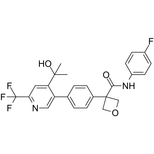 O1CC(C2=CC=C(C3=C(C(O)(C)C)C=C(C(F)(F)F)N=C3)C=C2)(C(NC2=CC=C(F)C=C2)=O)C1
