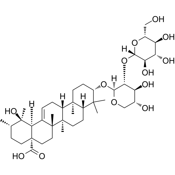 InChI=1S/C41H66O13/c1-20-10-15-41(35(48)49)17-16-38(5)21(32(41)40(20,7)50)8-9-25-37(4)13-12-26(36(2,3)24(37)11-14-39(25,38)6)53-34-31(27(44)22(43)19-51-34)54-33-30(47)29(46)28(45)23(18-42)52-33/h8,20,22-34,42-47,50H,9-19H2,1-7H3,(H,48,49)
