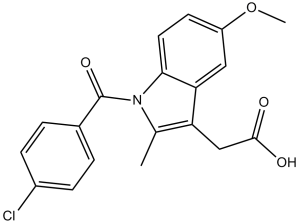 Nonsteroidal anti-inflammatory drugs; cardiovascular drugs; cyclooxygenase inhibitors; gout inhibitors; uterine contraction inhibitors. ClinicalTrials.gov is a registry and results database that lists human clinical studies funded by public and private institutions worldwide. This website is maintained by the National Library of Medicine (NLM) and the National Institutes of Health (NIH). Each record on ClinicalTrials.gov includes a summary of the study protocol, including: the disease or condition; the intervention (e.g., the medical product, behavior, or procedure under investigation); the study title, description, and design; participation requirements (eligibility criteria); the location of the study; contact information for the study location; and links to relevant information on other health websites, such as the NLM's MedlinePlus (which provides patient health information) and PubMed (which provides citations and abstracts of academic articles in the medical field). Indomethacin is listed in this database. Before using indomethacin capsules and other treatment options, carefully weigh the potential benefits and risks. The lowest effective dose should be used, and the duration of treatment should be minimized as much as possible, based on the patient's individual treatment goals. Indomethacin has been shown to be effective for active phases of the following conditions: moderate to severe rheumatoid arthritis (including acute exacerbations of chronic disease); moderate to severe ankylosing spondylitis; moderate to severe osteoarthritis; acute shoulder pain (bursitis and/or tendinitis); and acute gouty arthritis. /US product label includes/ Indomethacin for injection is indicated for the treatment of hemodynamically significant patent ductus arteriosus in preterm infants weighing between 500 and 1750 grams when routine medical interventions (e.g., fluid restriction, use of diuretics, digitalis, respiratory support, etc.) have been ineffective for 48 hours. Clear clinical evidence of hemodynamically significant patent ductus arteriosus is required, such as respiratory distress, continuous murmurs, increased precordial activity, cardiomegaly, or pulmonary congestion on chest X-ray. /US Product Label Contains/ For more complete data on the therapeutic uses of indomethacin (19 in total), please visit the HSDB record page. Drug Warnings /Black Box Warning/ Cardiovascular Risk. Nonsteroidal anti-inflammatory drugs (NSAIDs) may increase the risk of serious cardiovascular events, including thrombotic events, myocardial infarction, and stroke, which can be fatal. This risk may increase with the duration of use. Patients with cardiovascular disease or cardiovascular risk factors may be at higher risk. Indomethacin is contraindicated for the treatment of perioperative pain following coronary artery bypass grafting (CABG). /Black Box Warning/ Gastrointestinal Risk. Nonsteroidal anti-inflammatory drugs (NSAIDs) increase the risk of serious gastrointestinal adverse events, including gastric or intestinal bleeding, ulceration, and perforation, which can be fatal. These events may occur at any time during use and may occur without warning symptoms. Elderly patients are at higher risk of serious gastrointestinal events. Indomethacin should be used with extreme caution and under close monitoring in patients with a history of gastrointestinal bleeding or peptic ulcer disease. These patients should receive appropriate ulcer prophylaxis. All patients considered to have an increased risk of potentially serious gastrointestinal adverse reactions (e.g., elderly patients, patients receiving high-dose nonsteroidal anti-inflammatory drugs, patients with a history of peptic ulcer disease, or patients receiving concurrent anticoagulant or corticosteroid therapy) should be closely monitored for signs of ulcer perforation or gastrointestinal bleeding. To minimize the potential risk of gastrointestinal adverse reactions, the lowest effective dose and the shortest possible duration of treatment should be used. For high-risk patients, treatment options other than nonsteroidal anti-inflammatory drugs (NSAIDs) should be considered. Skin adverse reactions to indomethacin occur in less than 1% of cases and include pruritus, urticaria, rash, macules and measles-like rashes, erythema nodosum, petechiae or ecchymosis, exfoliative dermatitis, alopecia, Stevens-Johnson syndrome, erythema multiforme, and toxic epidermal necrolysis. For more complete data on drug warnings for indomethacin (43 total), please visit the HSDB record page. Pharmacodynamics Indomethacin is a nonsteroidal anti-inflammatory drug (NSAID) with analgesic and antipyretic effects. Its pharmacological action is achieved by inhibiting the synthesis of factors involved in pain, fever, and inflammation. Its therapeutic effect does not involve stimulation of the pituitary-adrenal axis. Indomethacin primarily works by inhibiting inflammation in rheumatoid arthritis, thereby relieving pain and reducing fever, swelling, and tenderness. Its efficacy has been demonstrated by reduced joint swelling, a decrease in the average number of joints exhibiting inflammatory symptoms, and a reduction in morning stiffness. Reduced total walking time and increased grip strength indicate improved mobility. Clinical trials have shown that indomethacin effectively relieves pain in acute gouty arthritis and reduces fever, swelling, redness, and tenderness. Due to its pharmacological effects, the use of indomethacin is associated with the risk of serious cardiovascular thrombotic events, including myocardial infarction and stroke, as well as gastrointestinal adverse reactions such as gastric or intestinal bleeding, ulceration and perforation. In a study of healthy individuals, acute oral and intravenous indomethacin treatment resulted in a transient decrease in basal cerebral blood flow and cerebral blood flow after carbon dioxide stimulation; one study found that this effect disappear