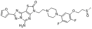 (+)-5-amino-3-{2-[4-(2,4-difluoro-5-{2-[(S)-methanesulfinyl]ethoxy}phenyl)piperazin-1-yl]ethyl}-8-(furan-2-yl)[1,3]thiazolo[5,4-e][1,2,4]triazolo[1,5-c]pyrimidin-2(3H)-one