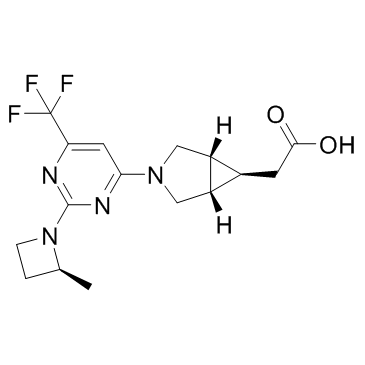 C[C@H]1CCN1C2=NC(=CC(=N2)N3C[C@@H]4[C@H](C3)C4CC(=O)O)C(F)(F)F