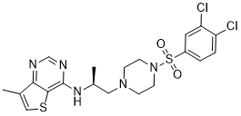 CC1=CSC2=C1N=CN=C2N[C@@H](C)CN3CCN(CC3)S(=O)(=O)C4=CC(=C(C=C4)Cl)Cl