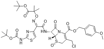 InChI=1S/C34H42ClN5O11S2/c1-32(2,3)49-29(44)34(7,8)51-39-22(21-16-52-30(36-21)38-31(45)50-33(4,5)6)25(41)37-23-26(42)40-24(19(14-35)17-53(46)27(23)40)28(43)48-15-18-10-12-20(47-9)13-11-18/h10-13,16,23,27H,14-15,17H2,1-9H3,(H,37,41)(H,36,38,45)/b39-22+/t23-,27-,53?/m1/s1