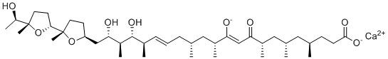 InChI=1S/C41H72O9.Ca/c1-25(21-29(5)34(43)24-35(44)30(6)22-27(3)20-26(2)14-15-38(46)47)12-11-13-28(4)39(48)31(7)36(45)23-33-16-18-41(10,49-33)37-17-19-40(9,50-37)32(8)42/h11,13,24-33,36-37,39,42-43,45,48H,12,14-23H2,1-10H3,(H,46,47)/q+2/p-2/b13-11+,34-24-/t25-,26-,27+,28-,29-,30+,31+,32-,33+,36+,37-,39-,40+,41+/m1./s1