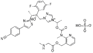 S(O)([O-])(=O)=O.[C@@](C1C=C(F)C=CC=1F)(O)(CN1N=C[N+](C(C)OC(=O)N(C2N=CC=CC=2COC(=O)CNC)C)=C1)[C@H](C1SC=C(C2C=CC(C#N)=CC=2)N=1)C