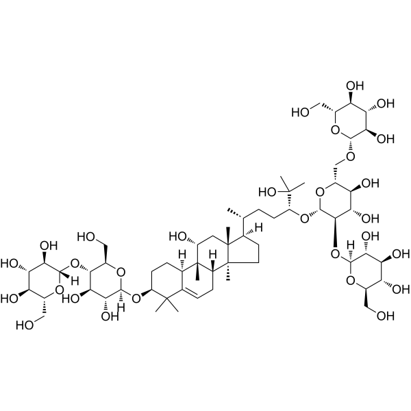C[C@H](CC[C@H](C(C)(C)O)O[C@H]1[C@@H]([C@H]([C@@H]([C@H](O1)CO[C@H]2[C@@H]([C@H]([C@@H]([C@H](O2)CO)O)O)O)O)O)O[C@H]3[C@@H]([C@H]([C@@H]([C@H](O3)CO)O)O)O)[C@H]4CC[C@@]5([C@@]4(C[C@H]([C@@]6([C@H]5CC=C7[C@H]6CC[C@@H](C7(C)C)O[C@H]8[C@@H]([C@H]([C@@H]([C@H](O8)CO)O[C@H]9[C@@H]([C@H]([C@@H]([C@H](O9)CO)O)O)O)O)O)C)O)C)C