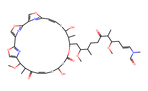O=CN(/C=C/CC(C(C(CCC(C(CC1OC(=O)CC(O)CC=CC(=O)C(C)C(OC)C2=COC(=N2)C2=COC(=N2)C2=COC(=N2)C=CCC(O)C1C)OC)C)=O)C)OC)C |t:22,49|