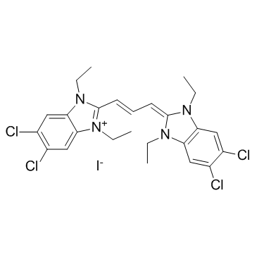 1,1',3,3'-四乙基-5,5',6,6'-四氯咪唑碳菁碘化物是一种花菁染料和有机碘化物盐。它用作荧光染料。它含有1,1',3,3'-四乙基-5,5',6,6'-四氯咪唑碳菁。